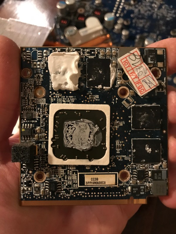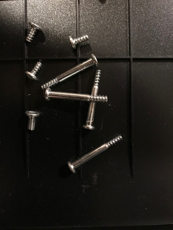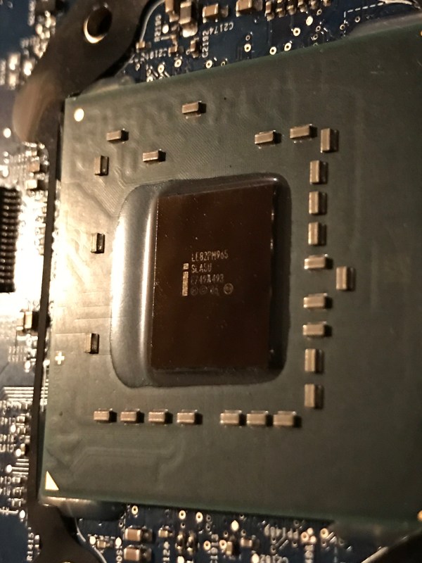 After straightening those bent nose hairs with the tweezers, I began the re-assembly process. Keep in mind I had to clean off the thermal paste and re-apply it (always a fun task). When I tightened up the heatsink screws, that’s when I noticed that one of them was sliding in and out of its threaded socket, which is a big no-no. It means the threads have worn off, which is bound to happen given how much tension the Apple designers designed into the back bracket that holds the heatsink to the motherboard. It’s likely designed to work 2-3 times, and after that it’s anyone’s guess when the threads will strip off.