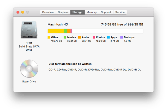 So now, I have no more NVMe SSD, no more Apple SSD, no more Fusion Drive, just one big SSD, plus my external drives. I figured it’d be a simpler setup, and it is.