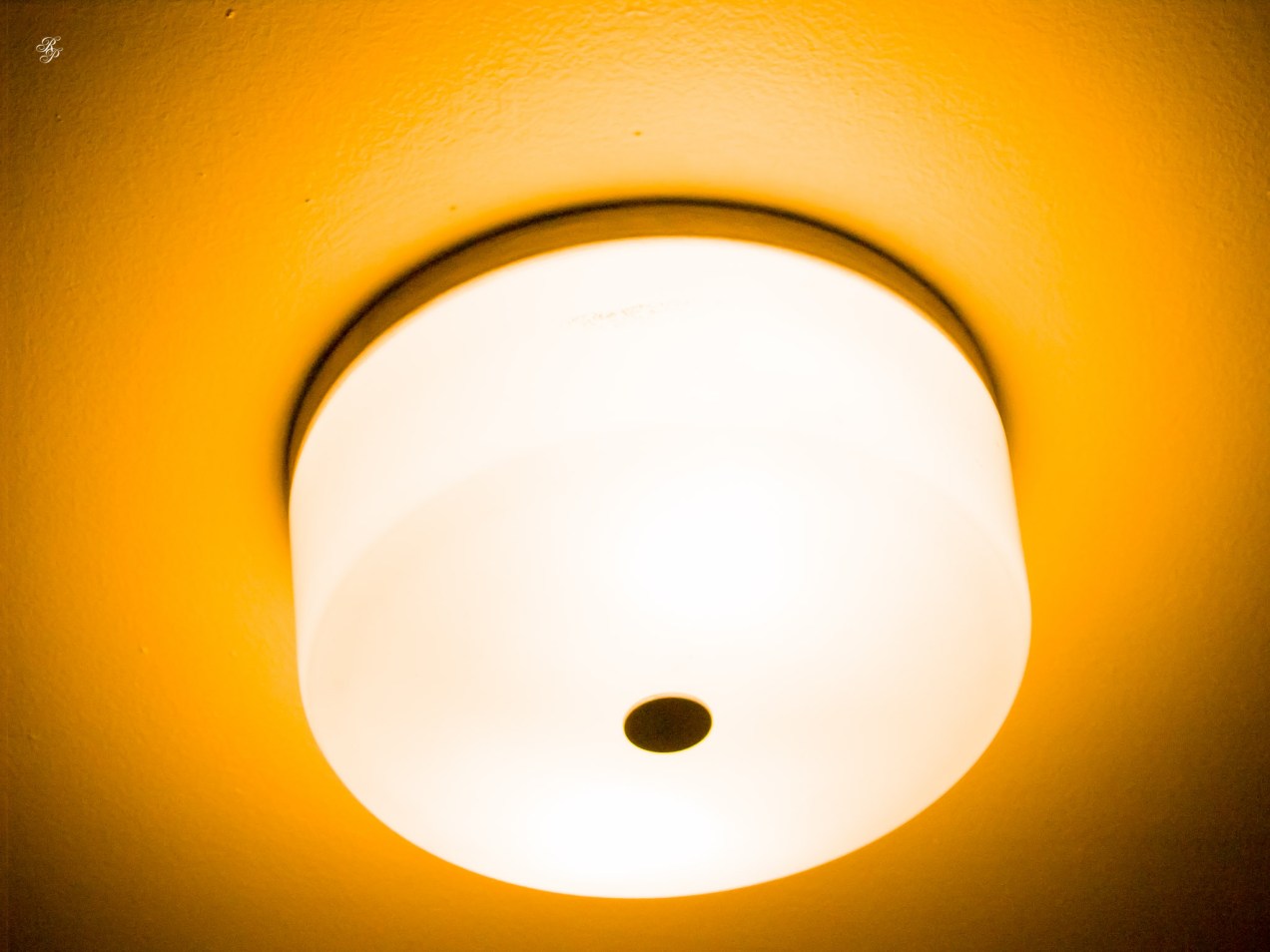 A simple round ceiling lamp can be reimagined like this, emphasizing its glow by overexposing it and vignetting the corners.