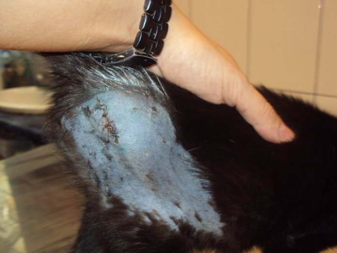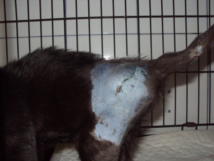 This is how the poor thing looked when they found her. Notice the broken and dislocated hips, pushing inside the abdominal cavity and pressing onto her organs.