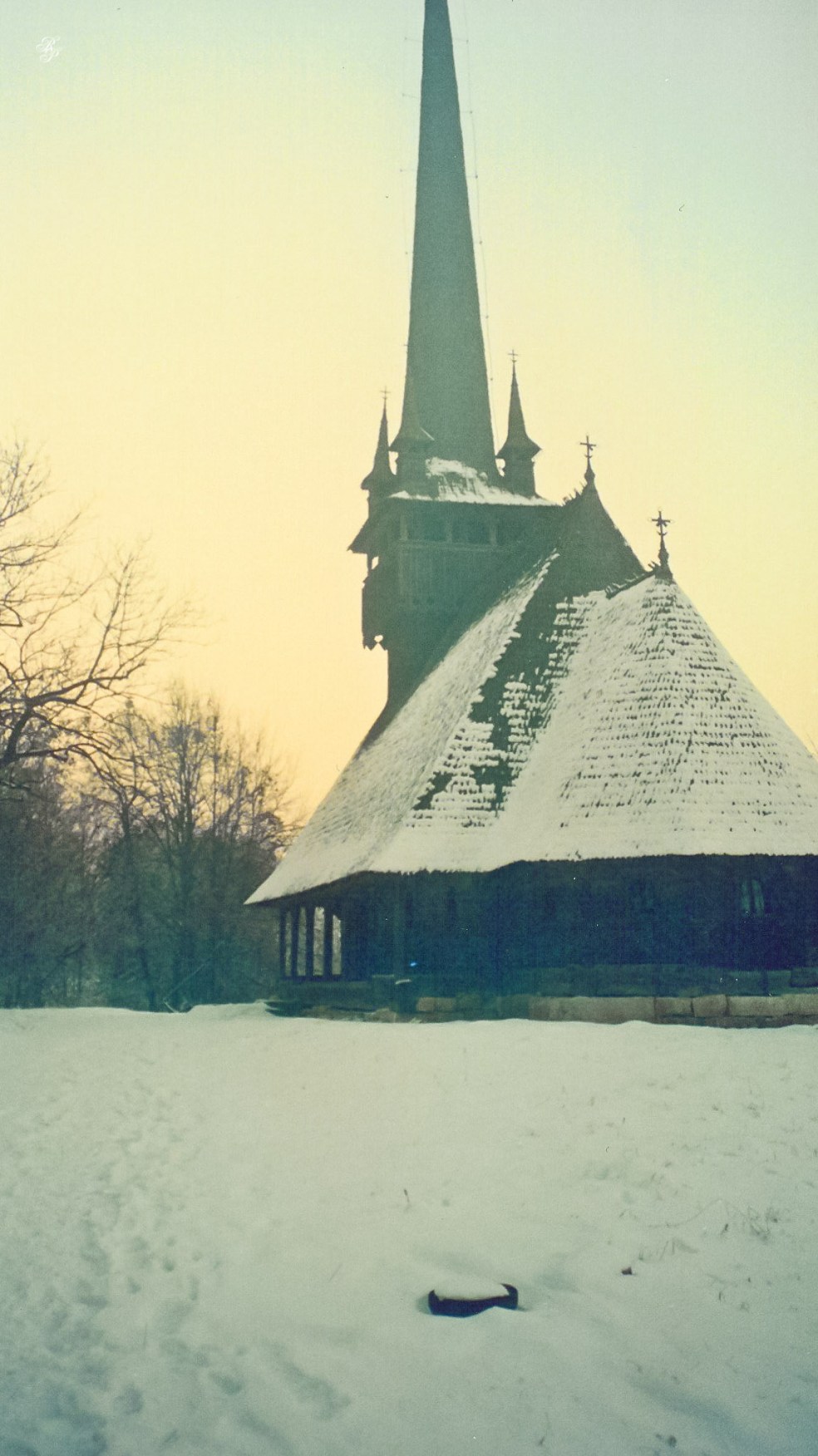 That winter, I visited my paternal grandparents in Maramures (my father’s parents). I visited them with my maternal grandfather (my mother’s father). He took this photograph of the three of us.