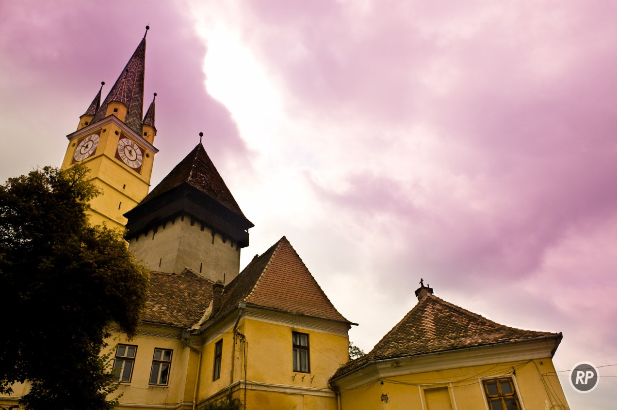 Built in 1488, St. Margaret’s Church in Medias, Romania, is the town’s most recognizable landmark, thanks to its leaning clock tower, which can be seen from miles away. Its tower dates from 1460, and left its originally vertical position due to some soil shifting. The photos shown below are from the church’s interior courtyard, inside its fortified walls.