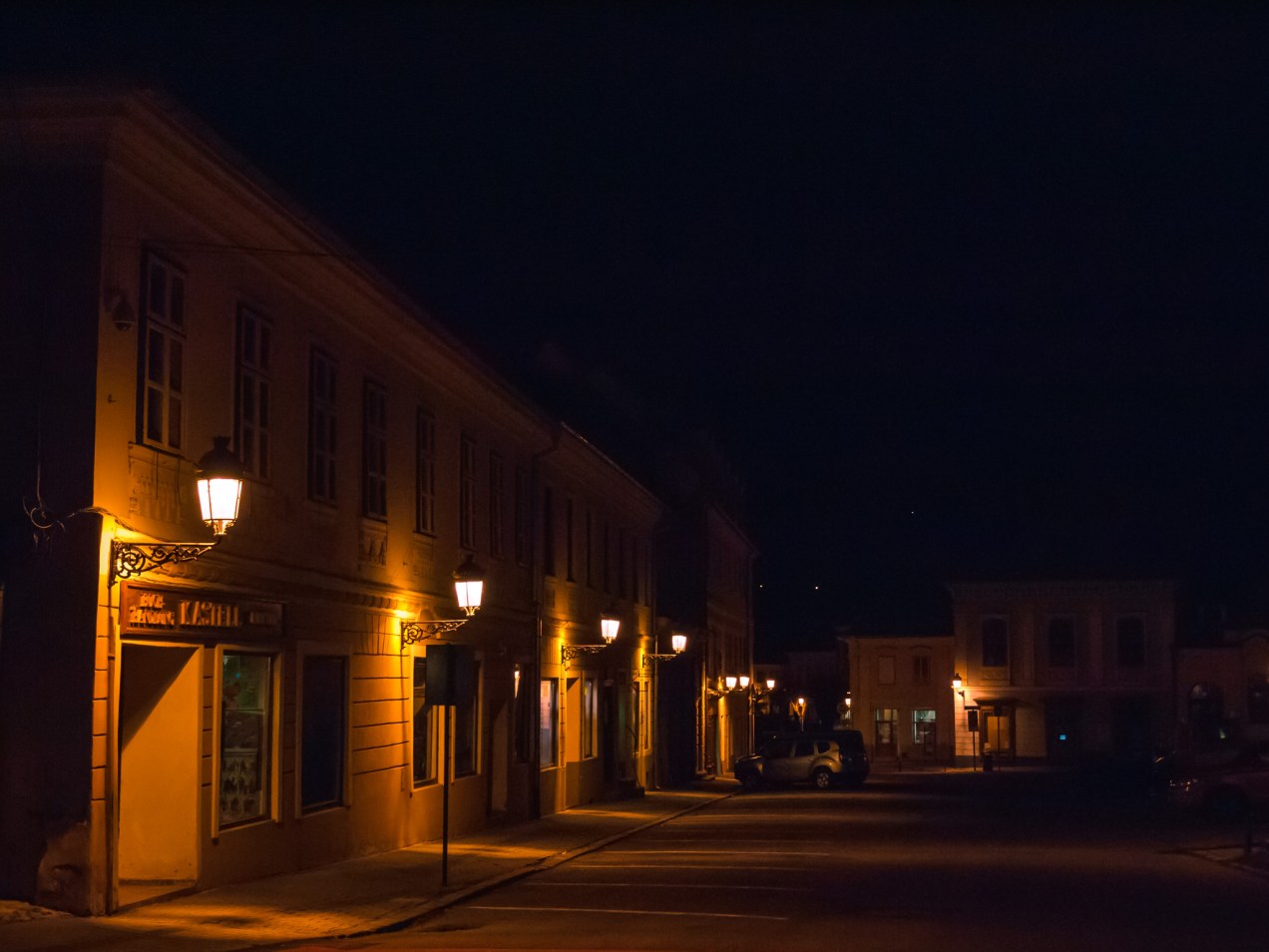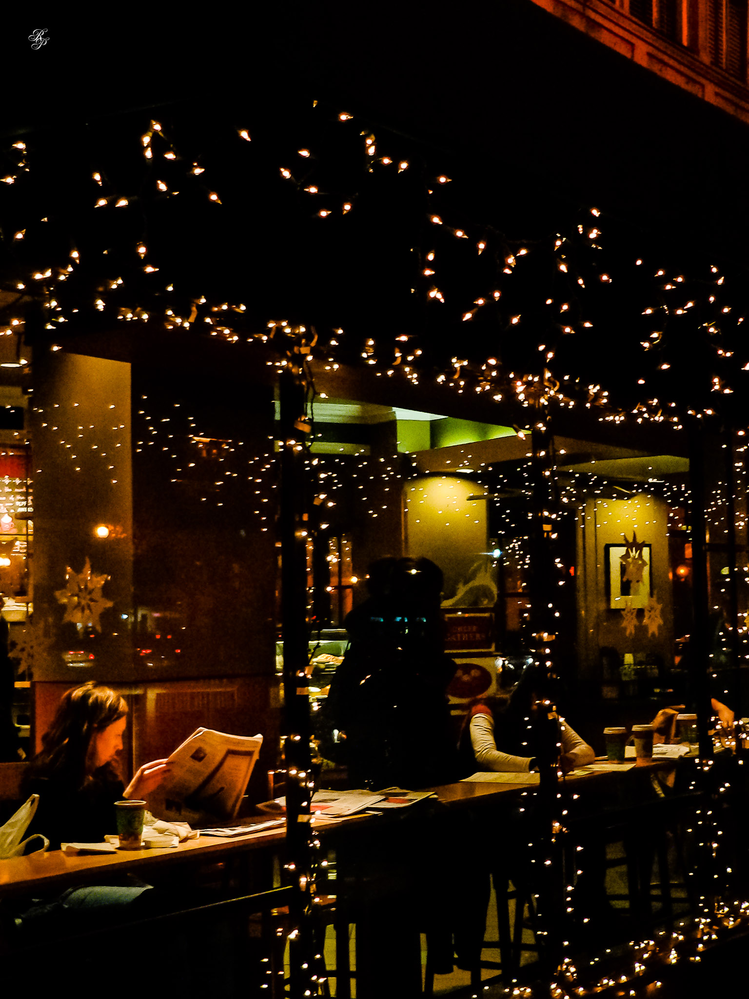 To celebrate the acquisition of a new camera (well, the acquisition is new, the camera isn’t), I took a pre-dawn walk through town. It was cold and somewhat rainy. Water got on my lens a couple of times and I’d forgotten to bring a lens cloth, so you’ll see some weird light artifacts on some of the photos. That’s from the partially wiped lens… I was hoping dawn would come soon and I’d get some nice photos of the “blue hour”. As it turned out, my battery ran out of juice and I got pretty cold before that happened. But it was really nice to walk through town with few to no people around me. I am after all an introvert, so the more time I spend alone, the better I feel.