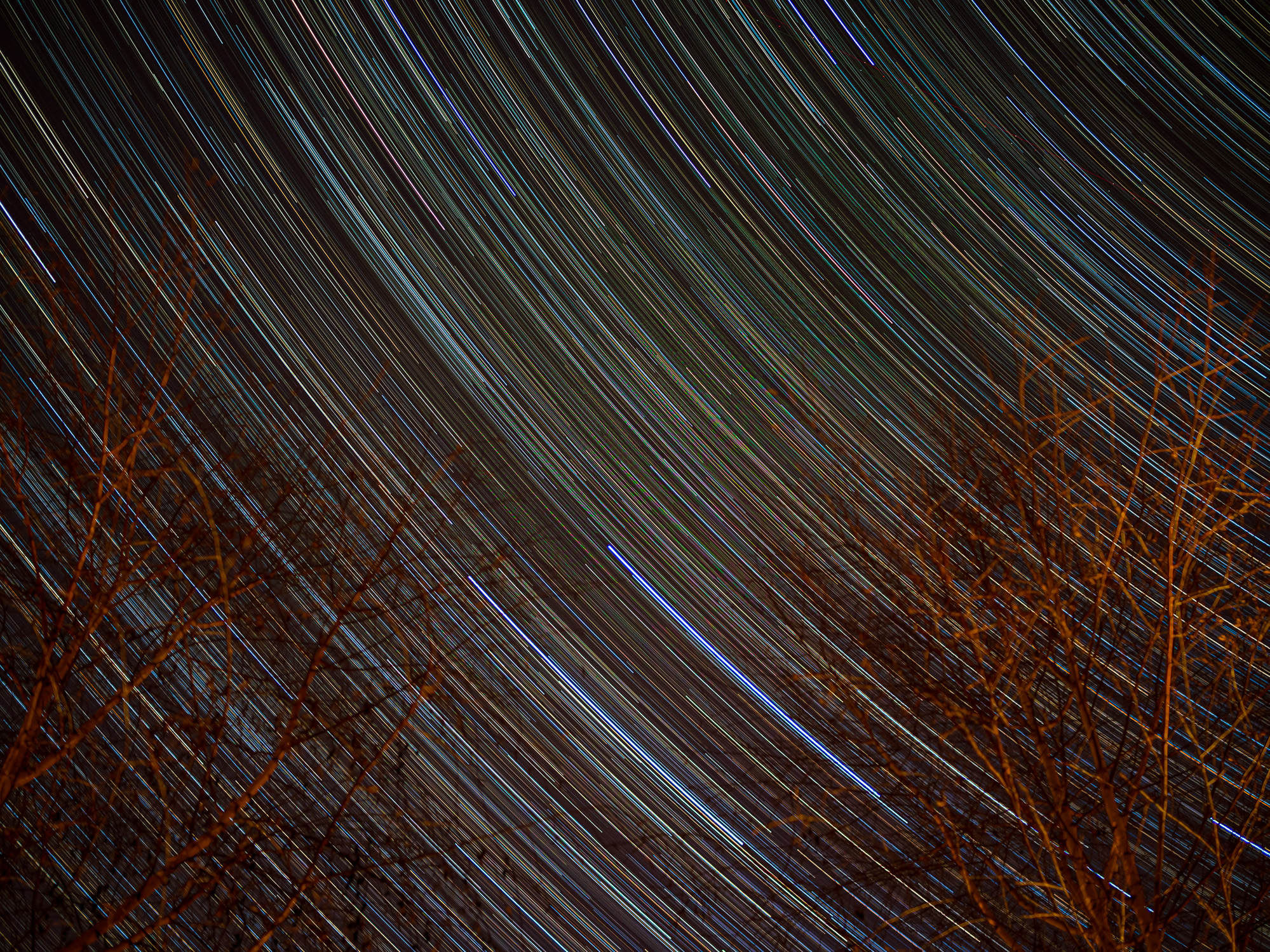 The theme for these photographs is day and night — more precisely, the night that followed that day, which was a beautiful spring day by the way, as you’ll see here. That night I tried capturing star trails for the first time. My PEN-F has a feature called Live Composite, which takes a series of short exposures and stacks them together in the camera, combining only the areas that contain changes in light and displaying the progress as it goes. This means that once you get it going, you can let it capture the star trails by itself, checking in every once in a while to see its progress on the display, which will also show you the histogram. This information updates with each new image, allowing you to get exactly the amount of exposure and star trails you like. It’s a very cool feature, which Olympus launched on their top cameras four years ago. Since I just bought my PEN-F, I only got to use it now, and it’s so cool!
