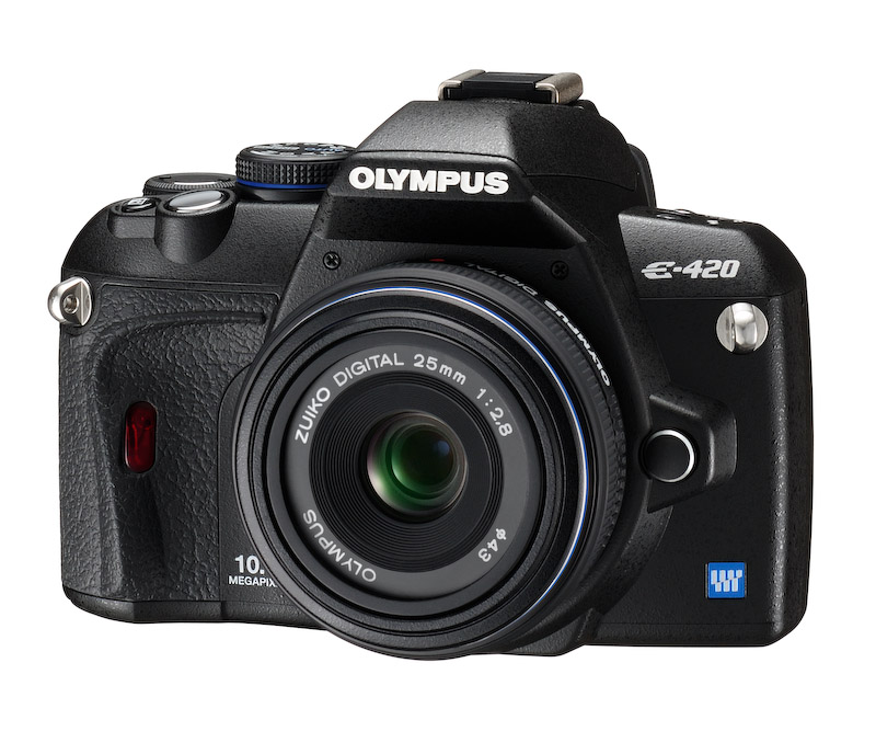 Here’s where I get to the last part, smaller and lighter DSLRs than currently thought possible. Currently, the smallest DSLR on the market is the Olympus E-420, pictured below. Do you know what the Four Thirds consortium has come up with? It’s the Micro Four Thirds standard, which allows for thinner, shorter lenses, and thinner, shorter camera bodies. A Micro Four Thirds camera will look and weigh just about the same as a point-and-shoot camera with a decent zoom lens.