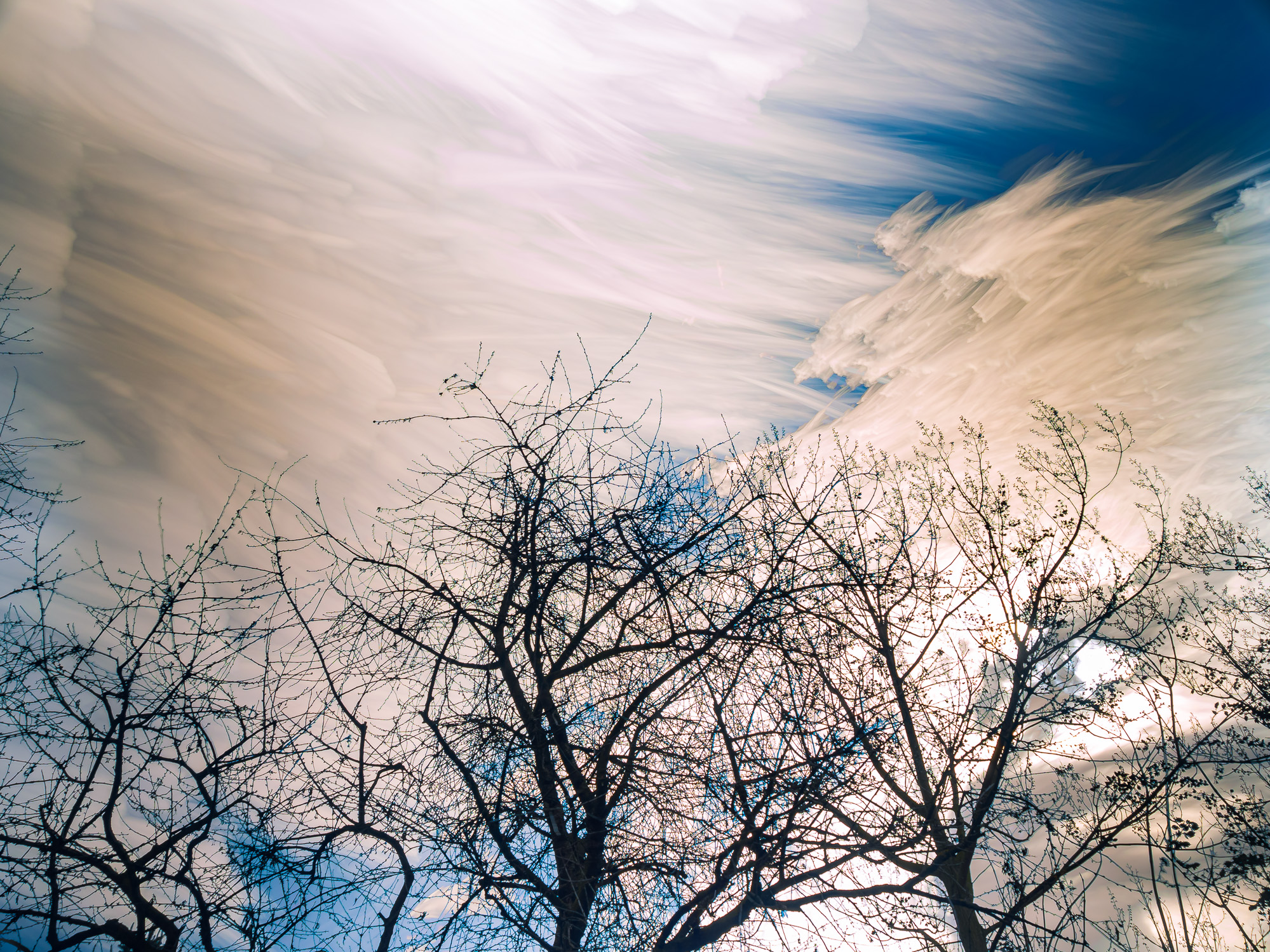 I had read that daytime live composite shots were possible on the PEN-F, in addition to the nighttime shots (which let you capture star trails), so I tried it out today. Because the minimum shutter speed for each frame is 0.5 seconds and the smallest aperture is f8, I needed to use an ND filter to compensate for the abundant daylight, but thankfully the one I had did the trick. Since there are no stars out in the daytime, what you can capture are cloud movements, and what you get are some pretty amazing photos, the sort of which I wasn’t able to capture before. You’ll be able to appreciate the difference once you look at a normal photo of the sky and clouds (see below). The same sky captured with Live Composite looks amazing! I’ve also included photos of a couple of our cats, a few spring flowers and the waning moon. Enjoy!