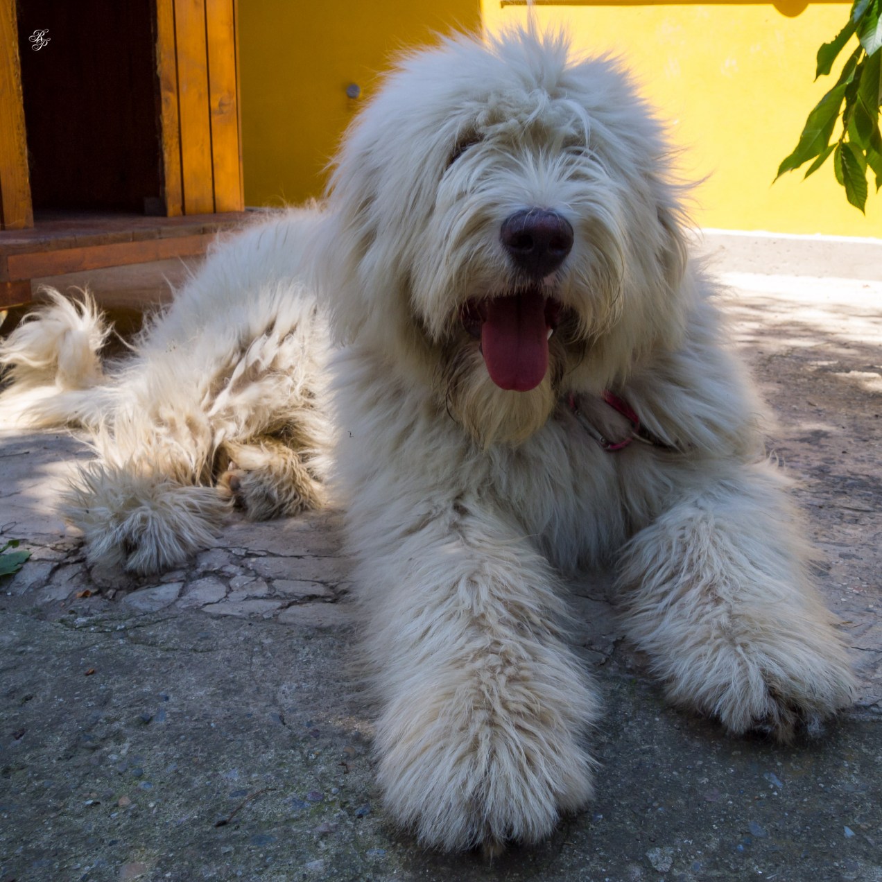 That little furball suckling from our dog is Zumi Zoom-Zoom, our newly adopted kitten. The dog is of course Tessa, our ciobanesc mioritic breed, sporting her summer look. She normally looks like this.