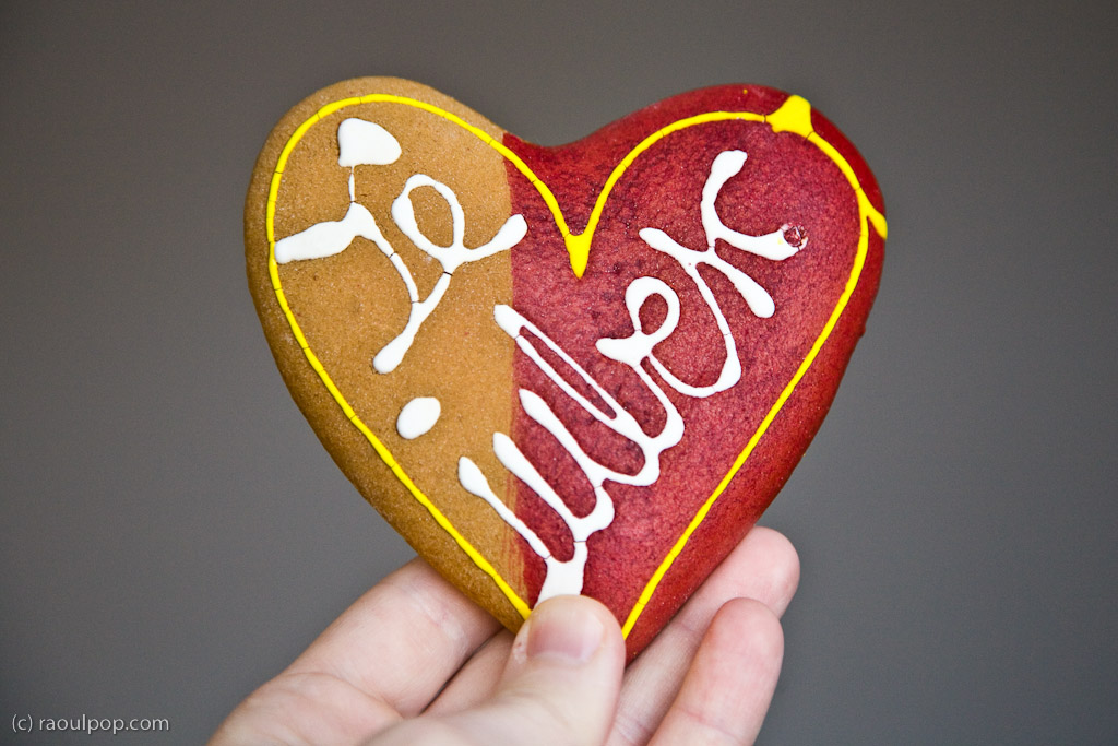 Look what my sweetheart gave me for Valentine’s Day. It’s a gingerbread heart with the words “I love you” written on it, in Romanian.