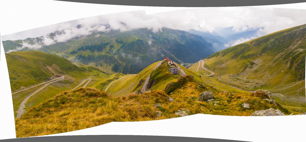 We climbed down refreshed and clear-headed, and as evening drew near, we wound our way down toward Sibiu and home, but not before taking another panorama of the Transfagarasan.