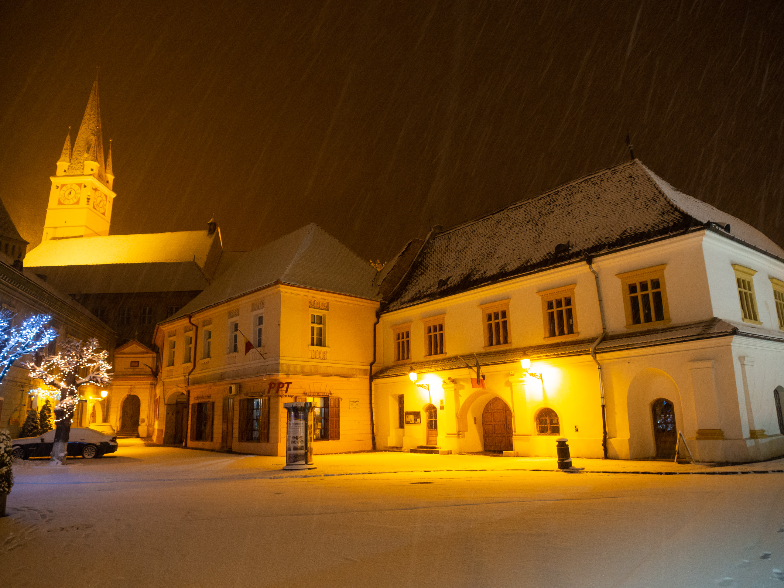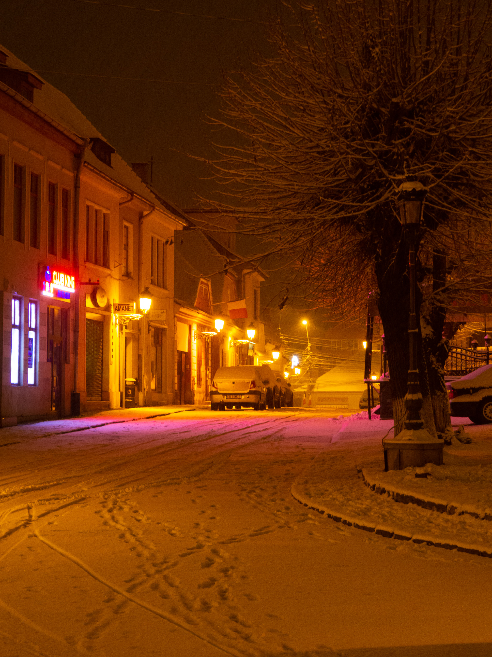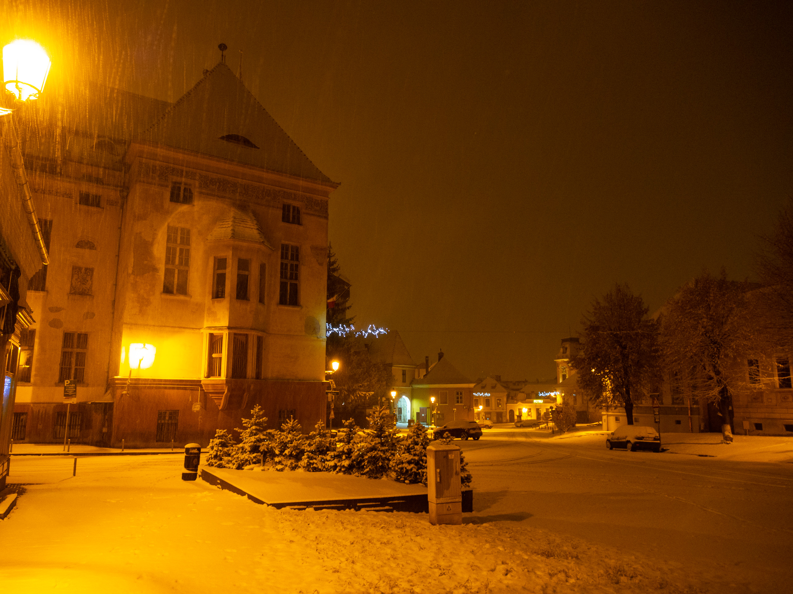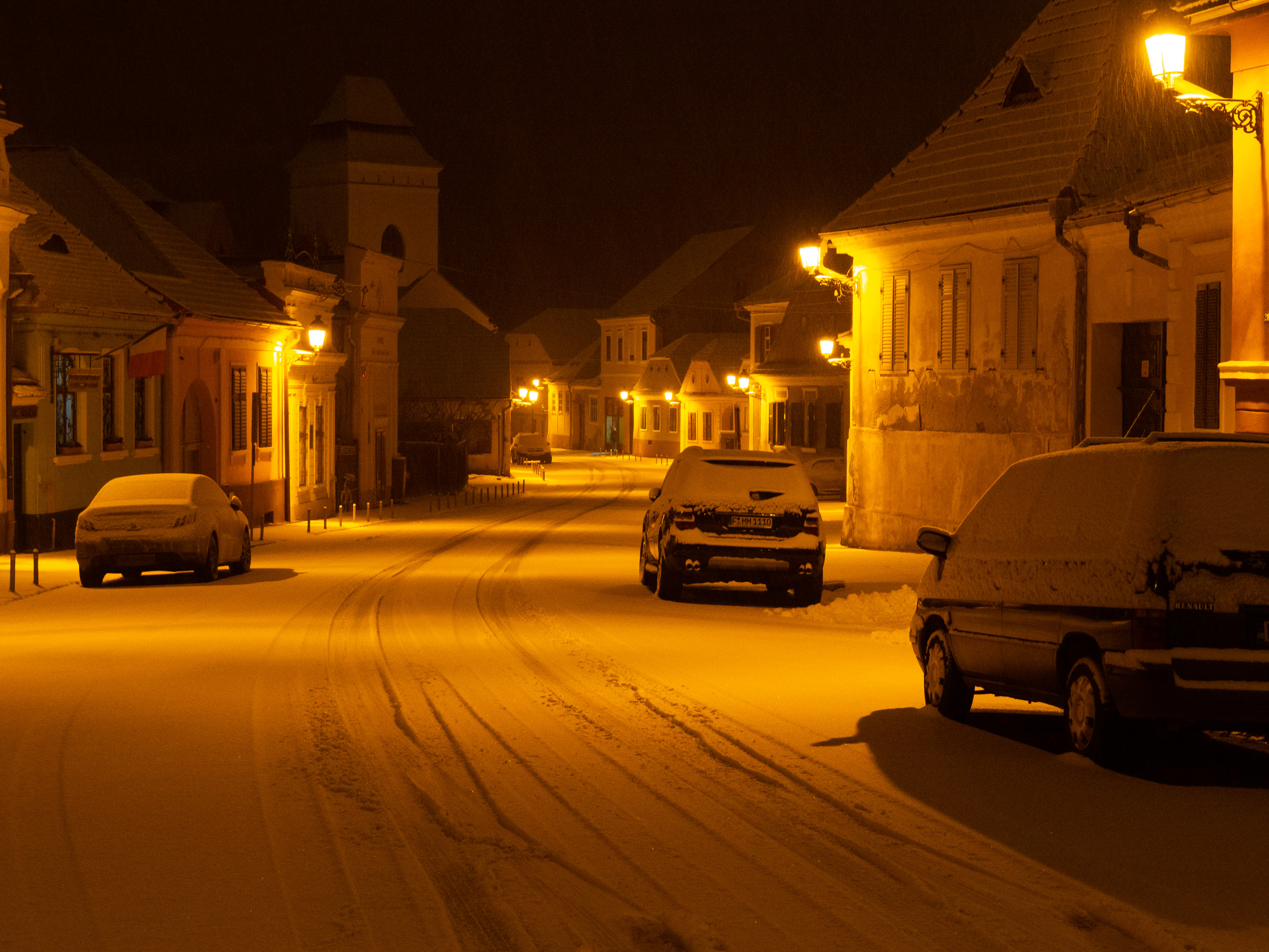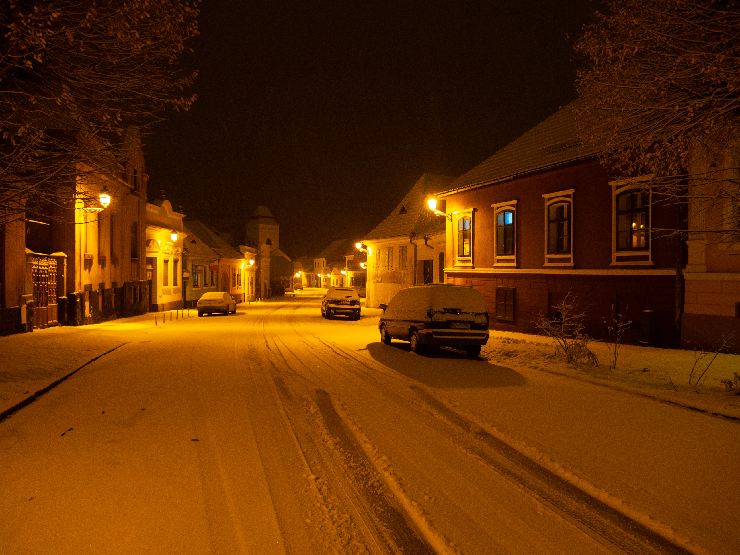 A dawn walk through the historic town center in Medias, Transilvania, Romania