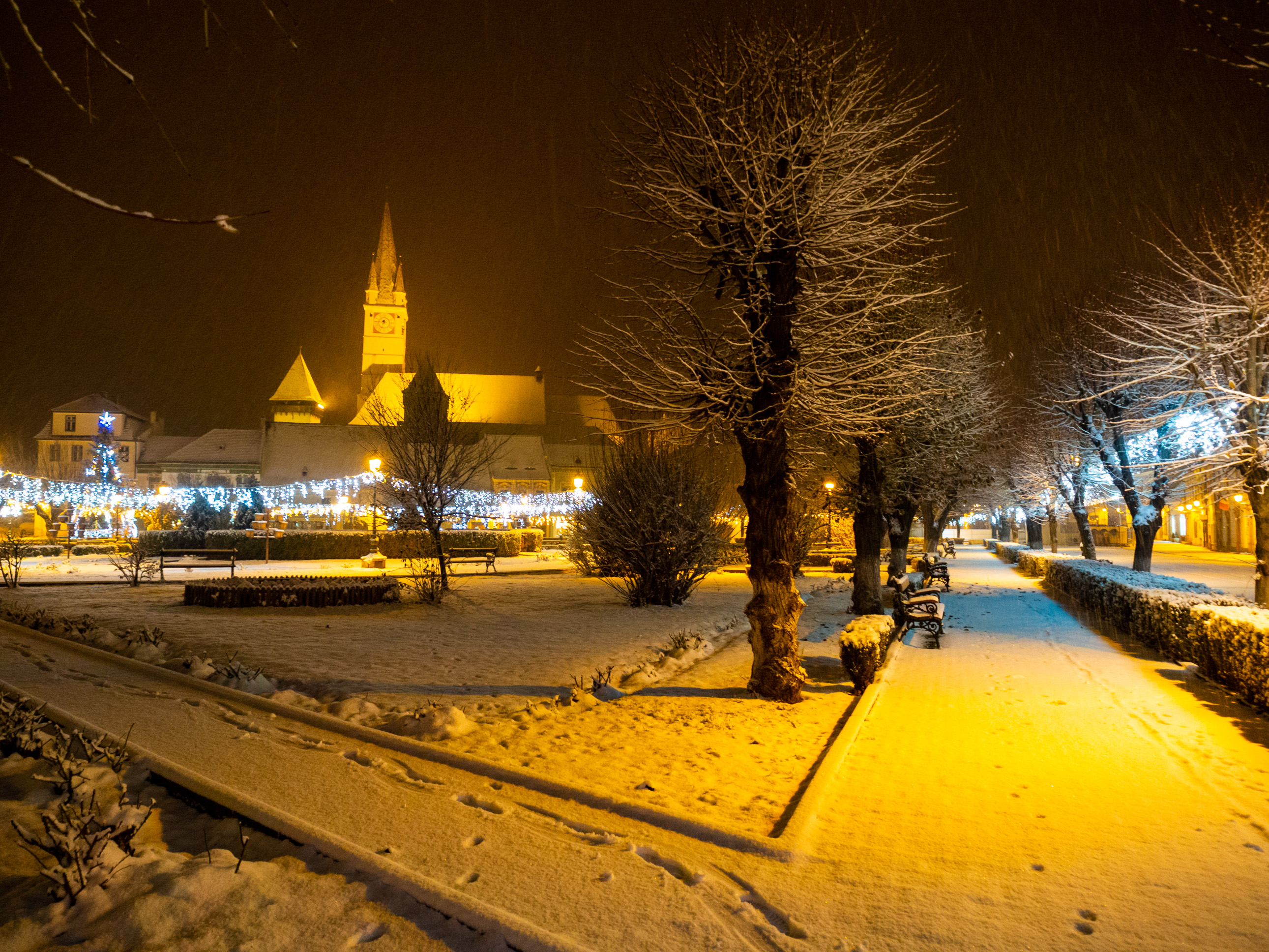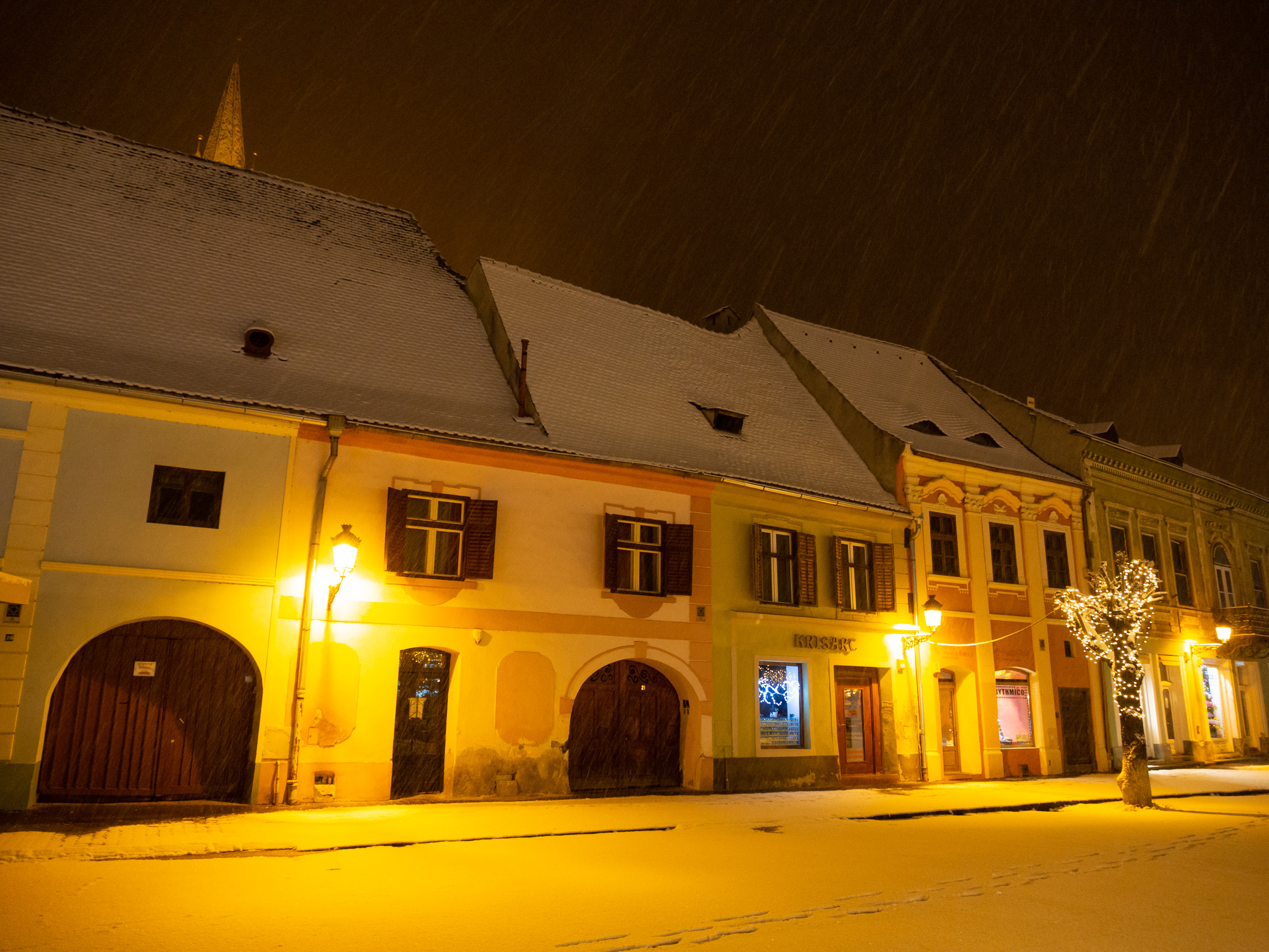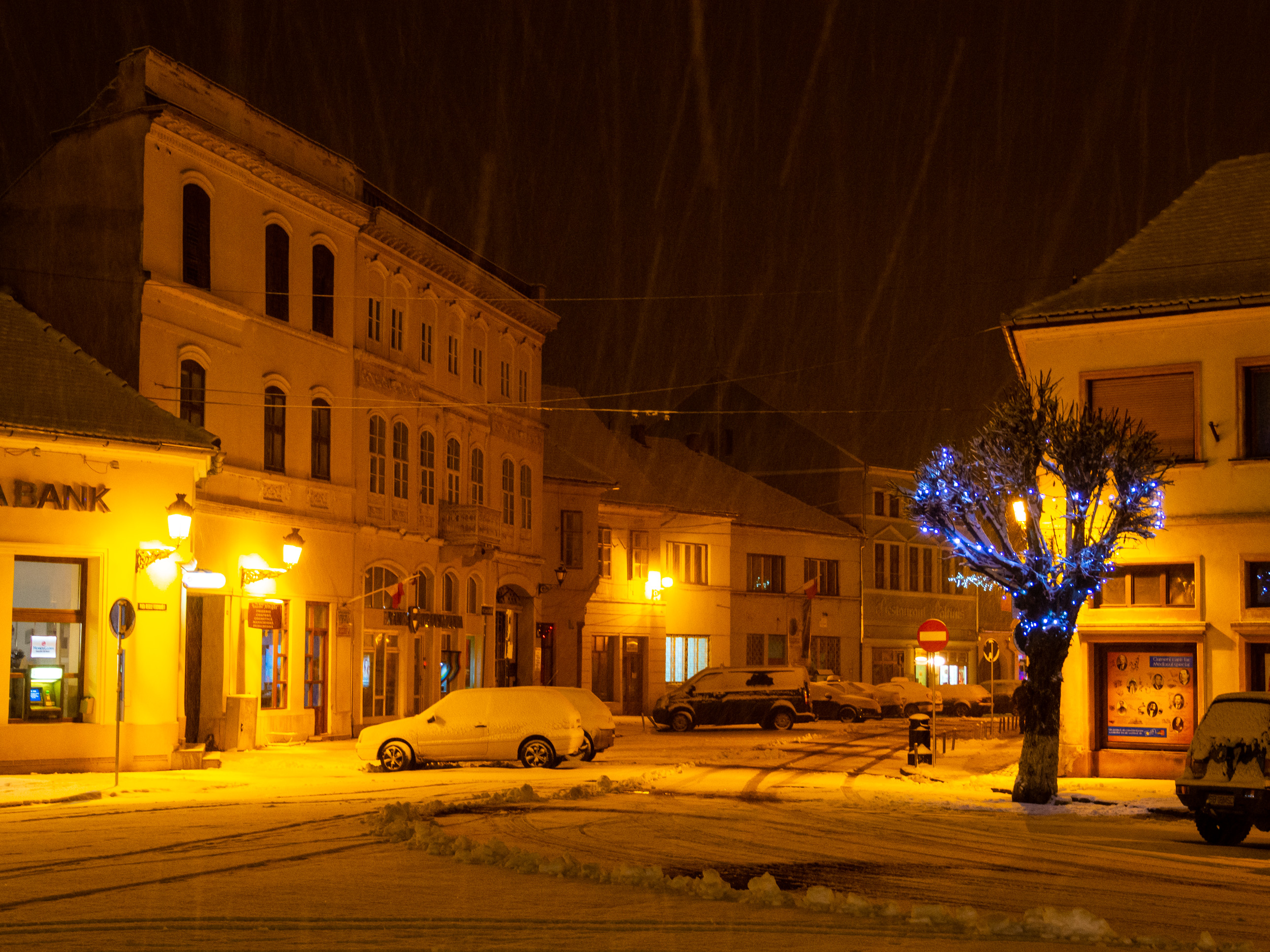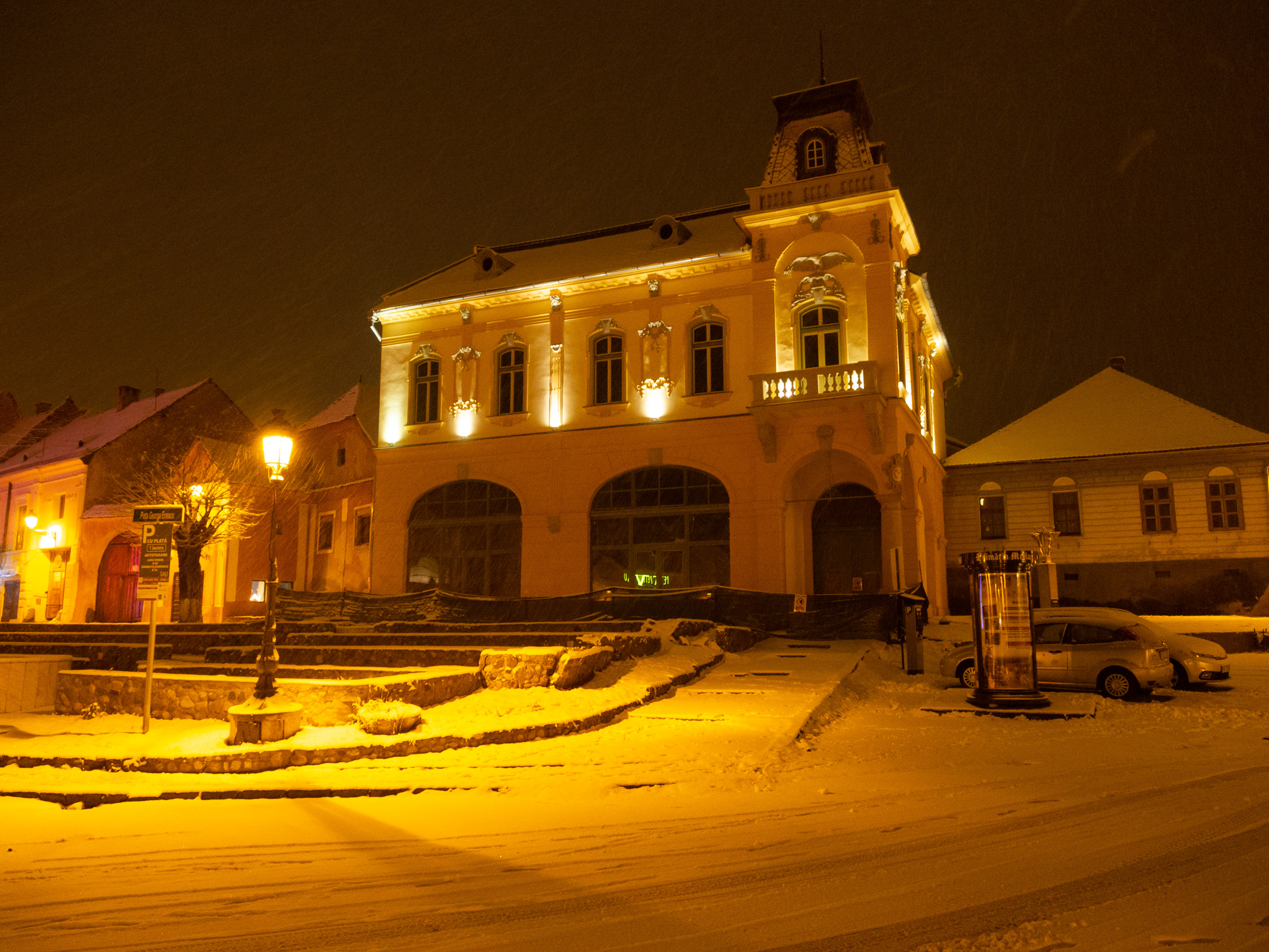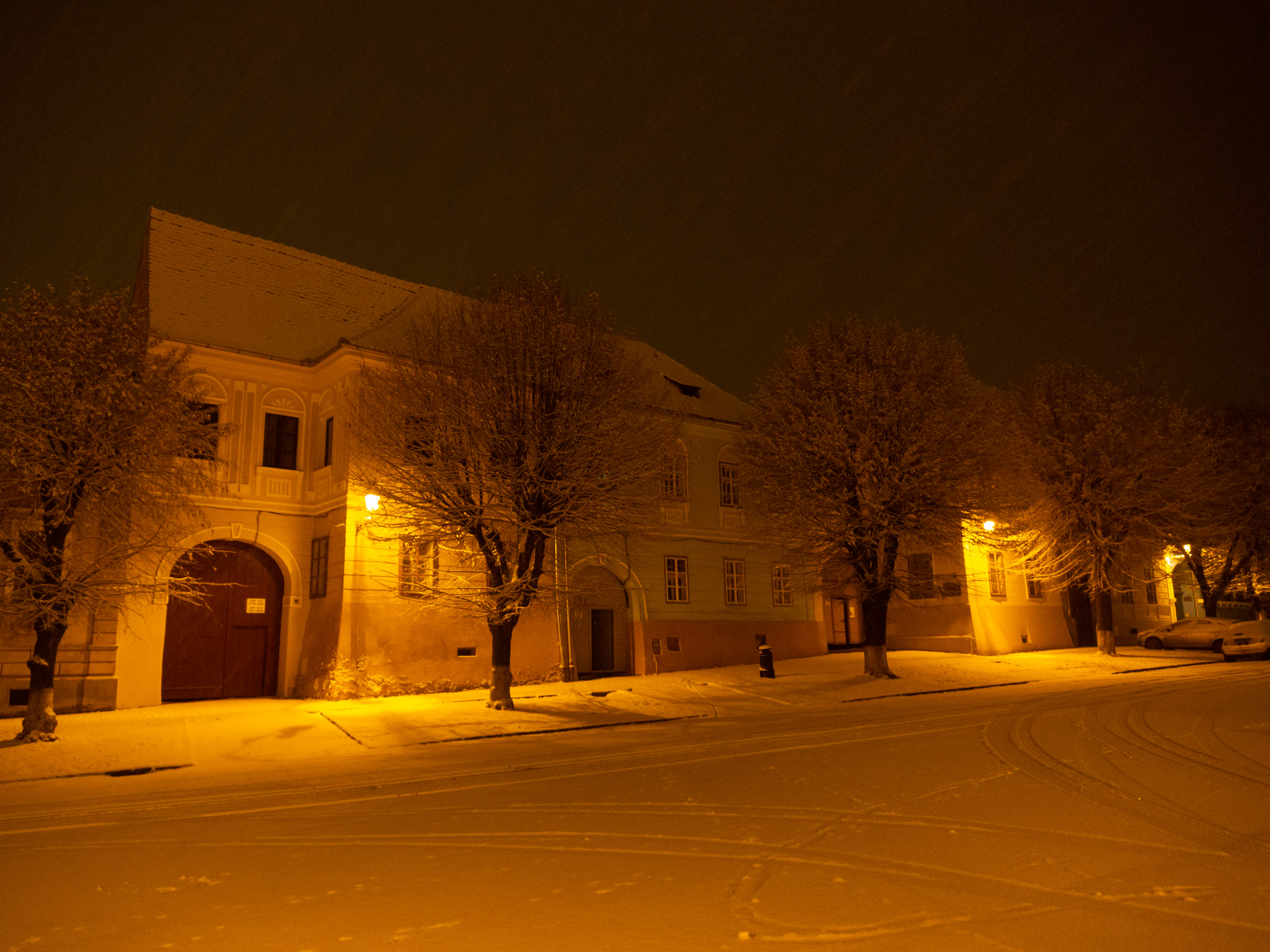 A dawn walk through the historic town center in Medias, Transilvania, Romania