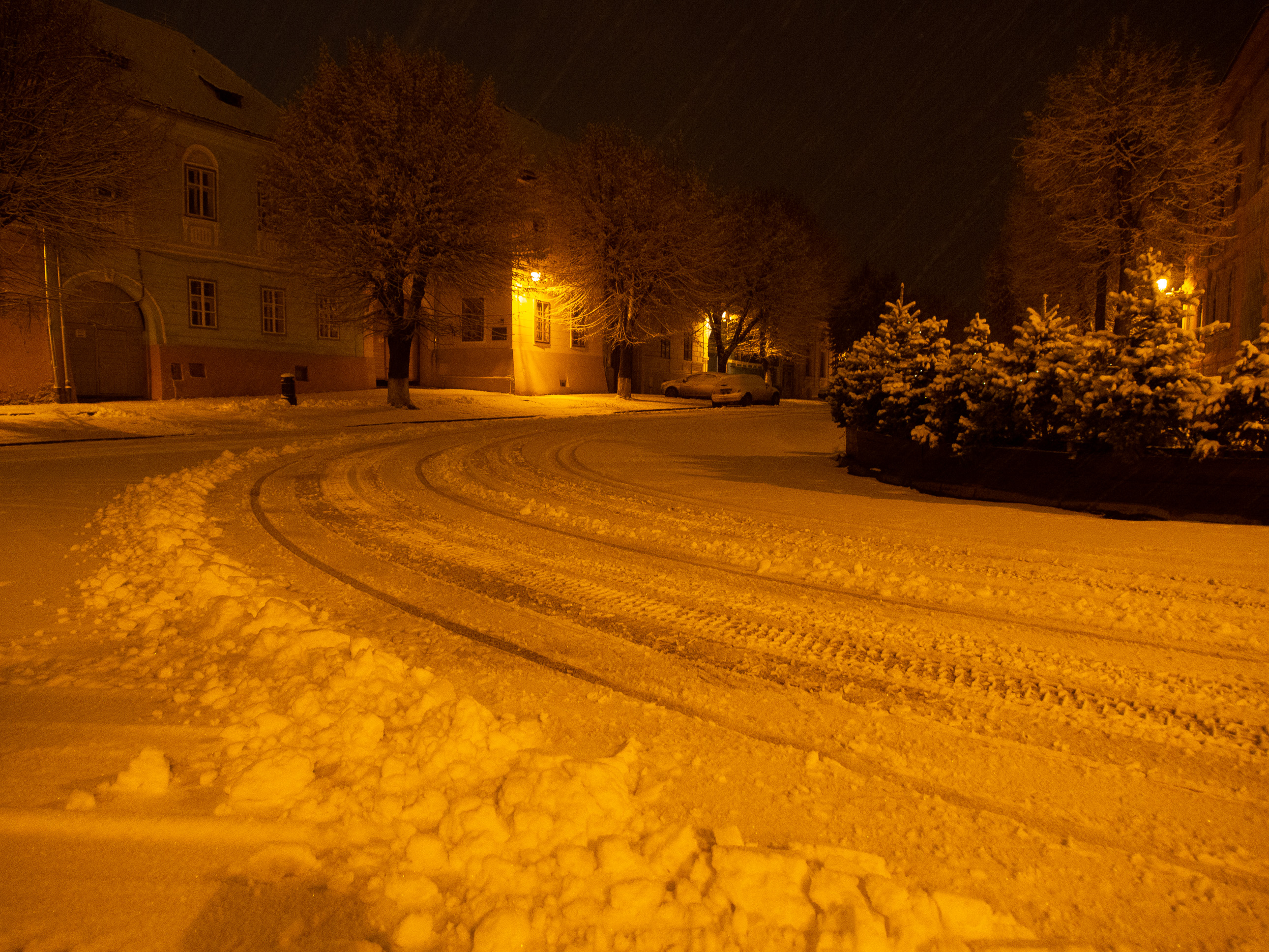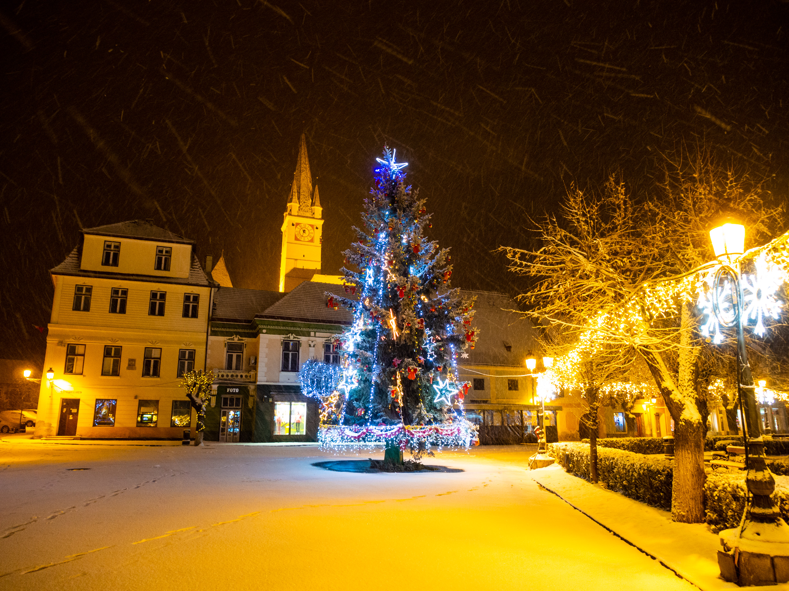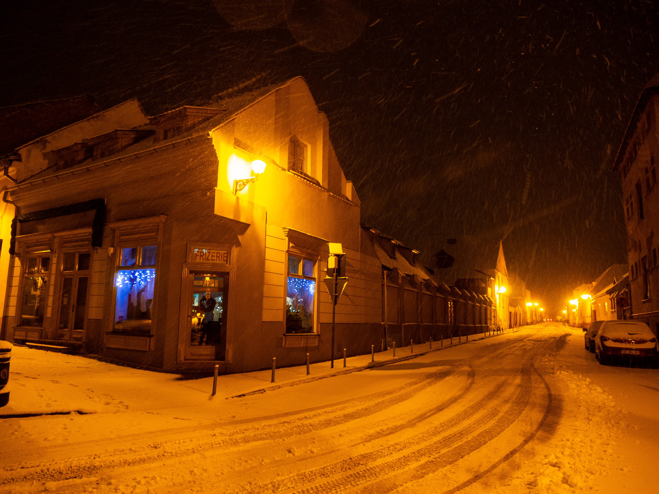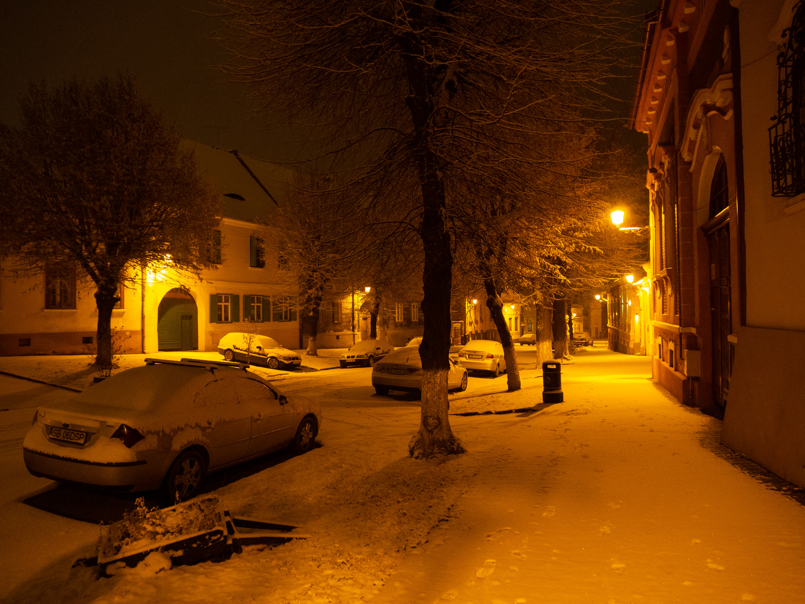 A dawn walk through the historic town center in Medias, Transilvania, Romania