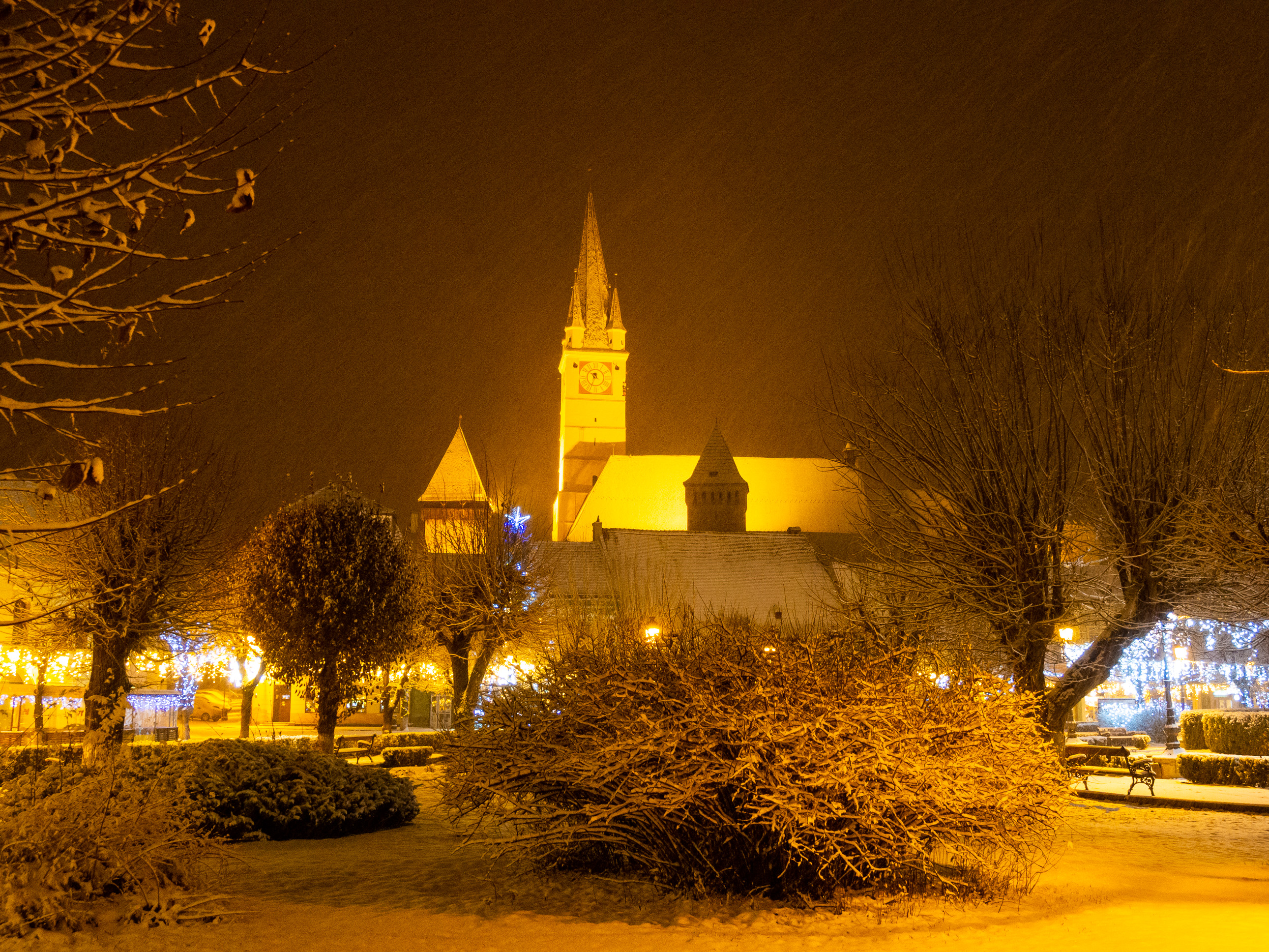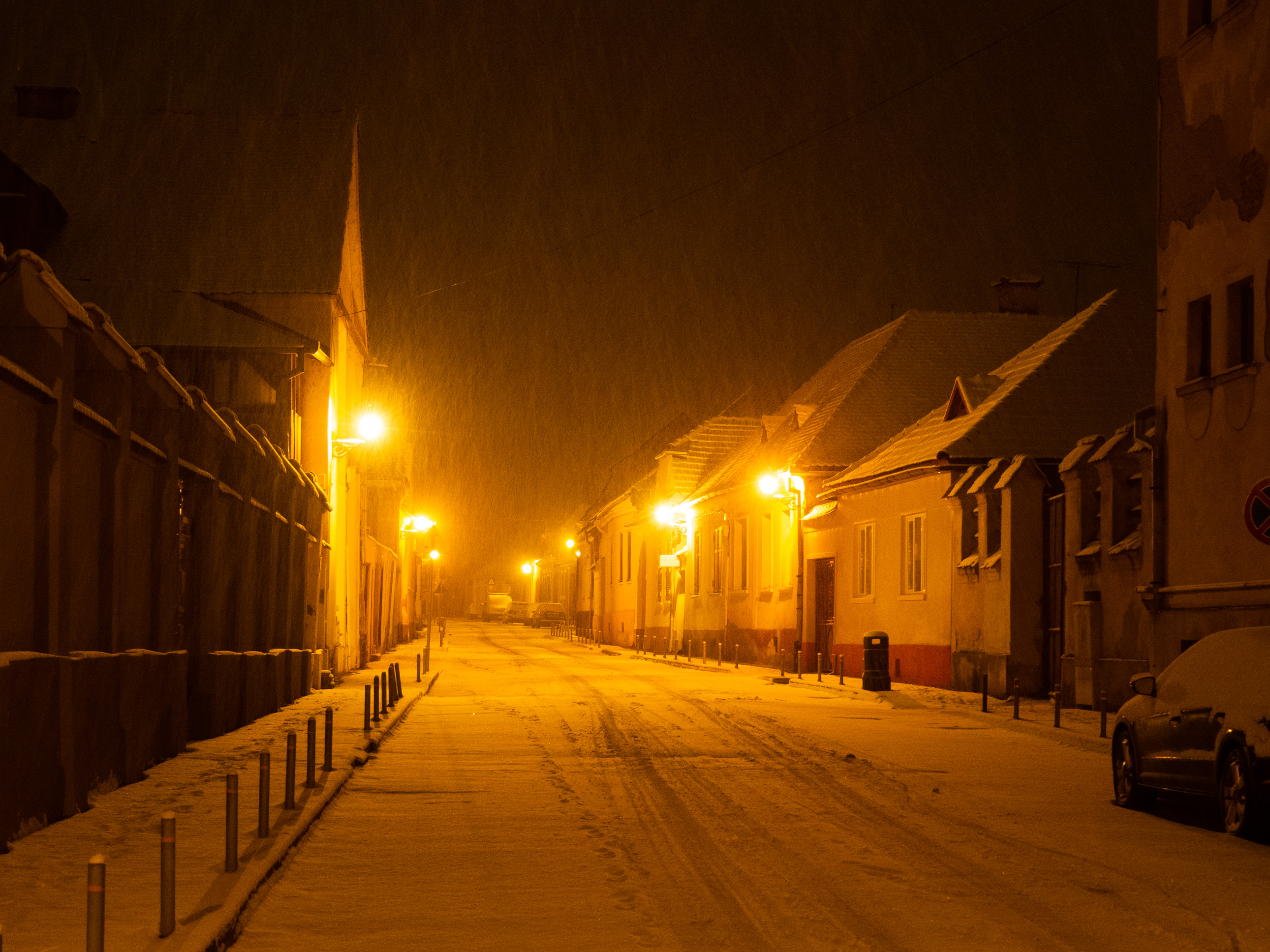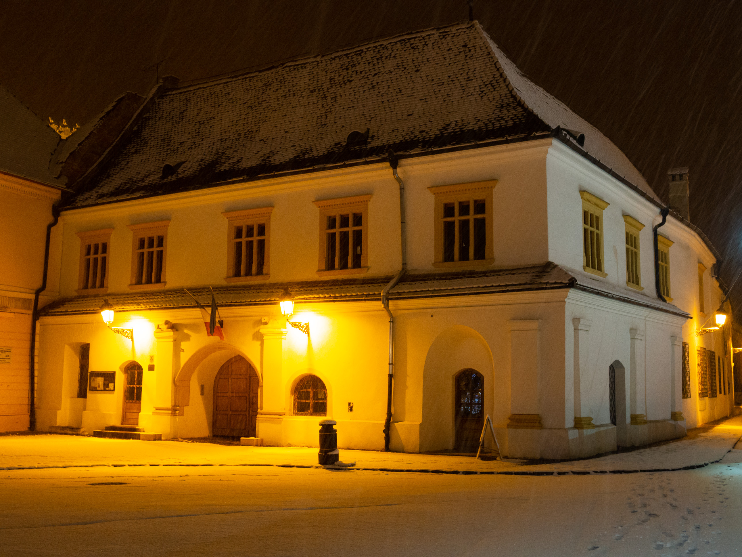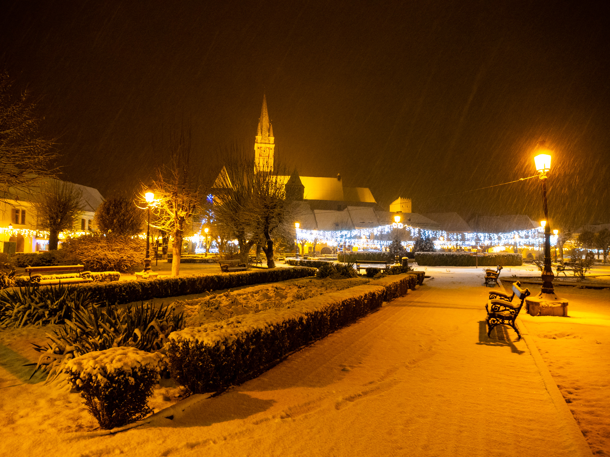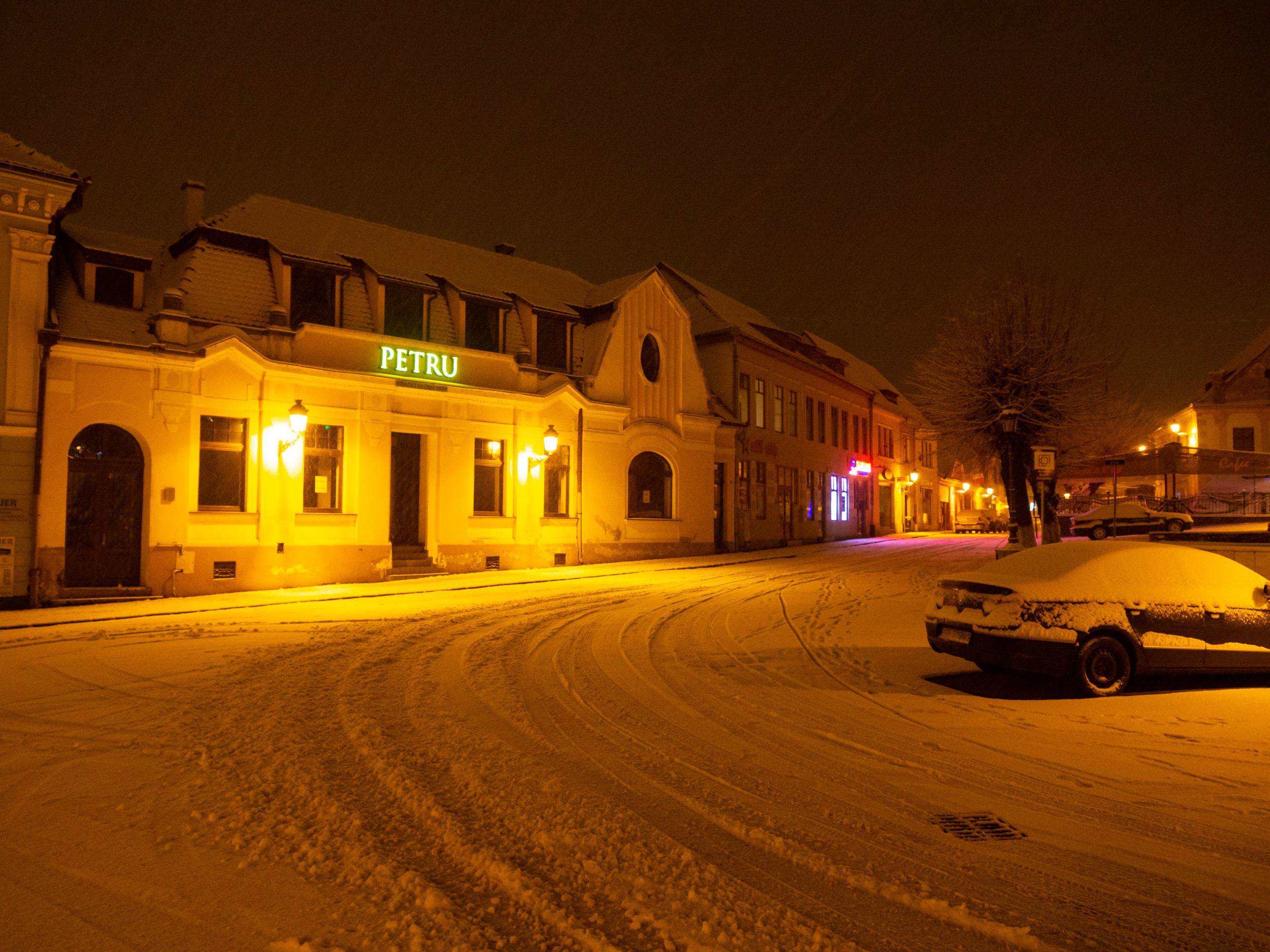A dawn walk through the historic town center in Medias, Transilvania, Romania