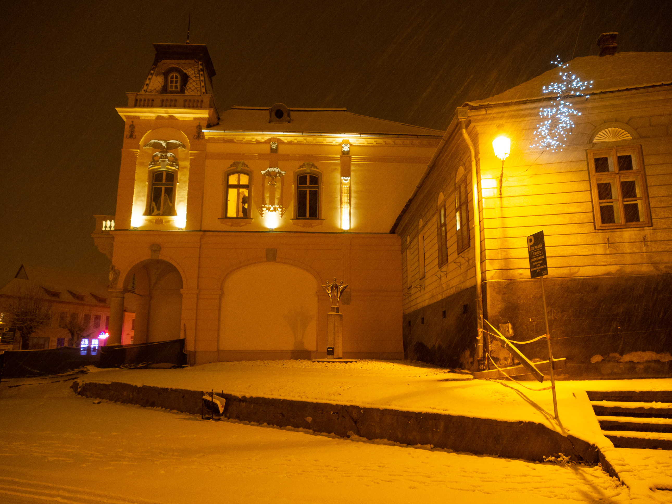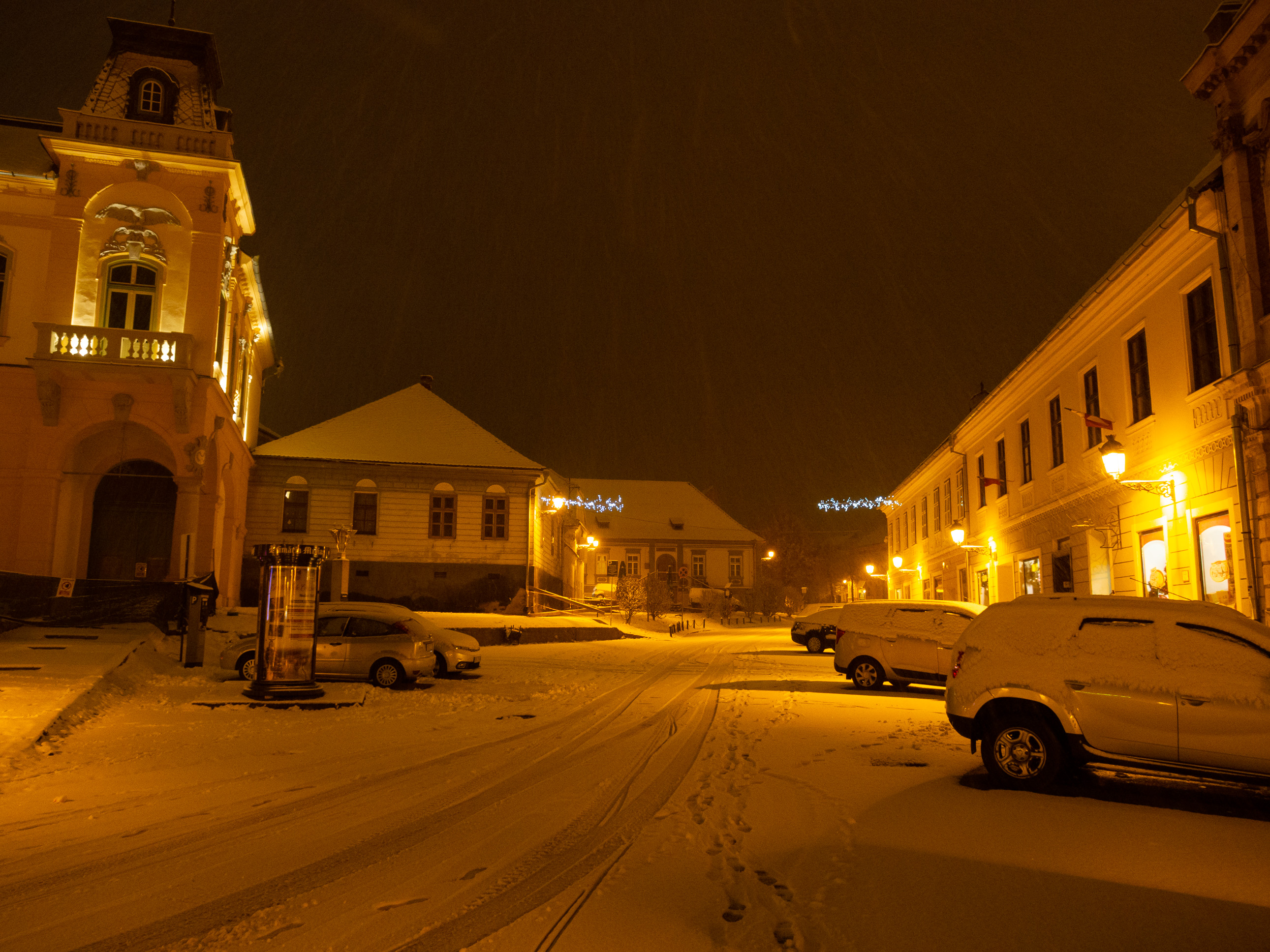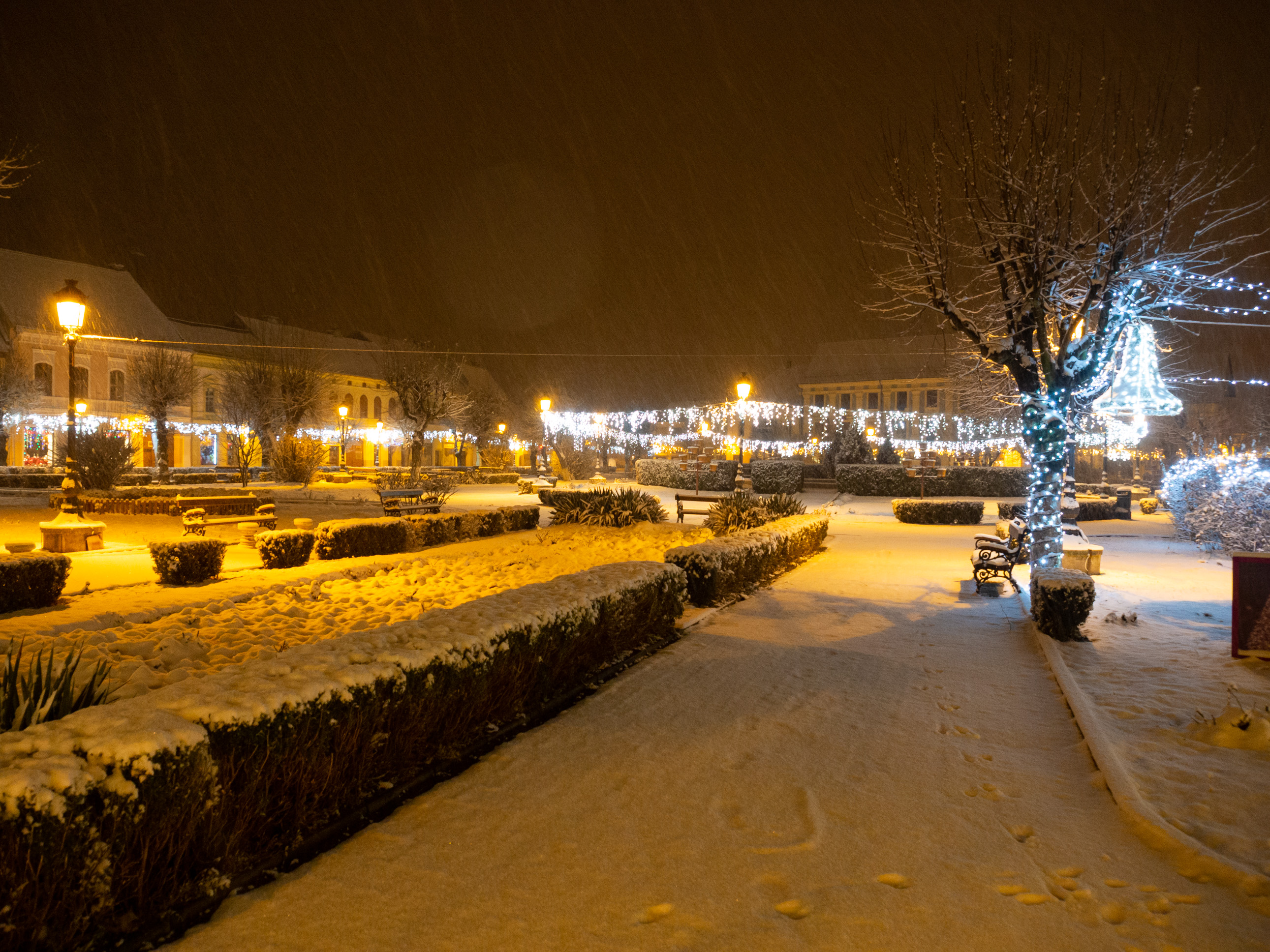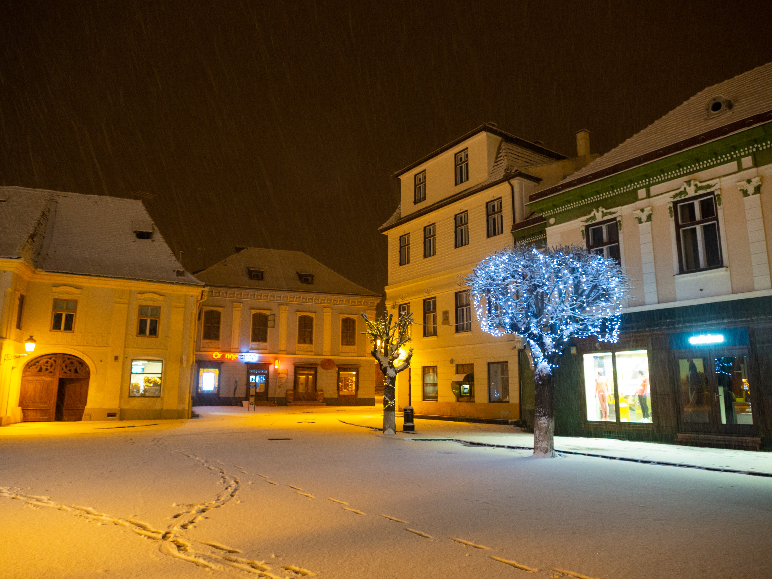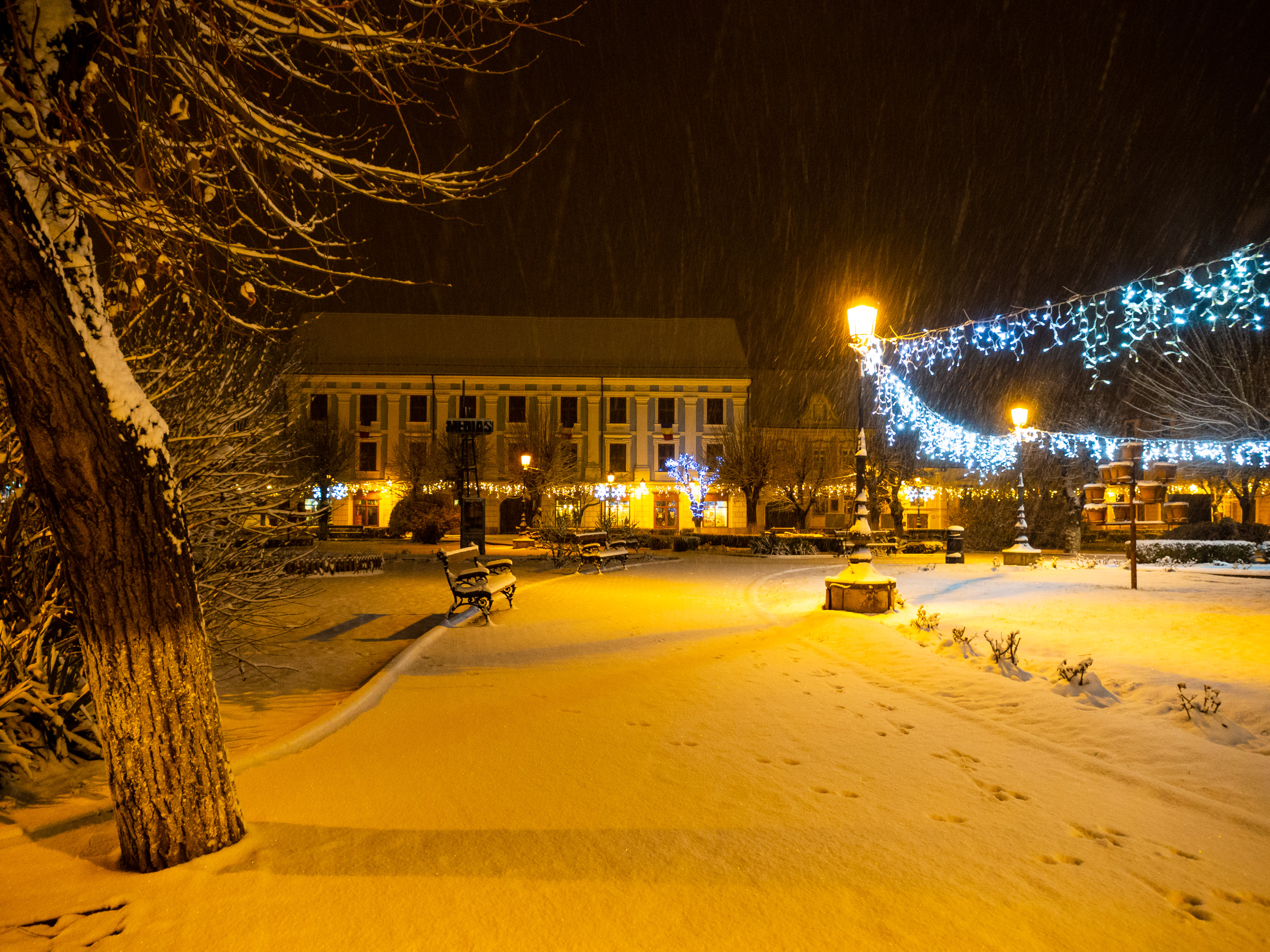 A dawn walk through the historic town center in Medias, Transilvania, Romania