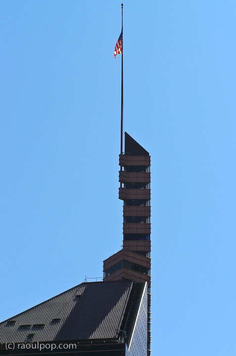 This tower was but a small spot on the downtown skyline with the naked eye. I get my kicks from zooming into distant objects. While I like wide lenses a lot, there’s something really nice about the flatter perspective of telephoto lenses.