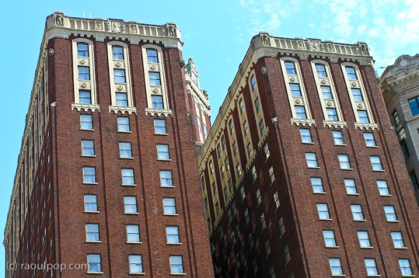 We made a day trip into downtown Baltimore last week. I had our point-and-shoot with us, and took photos of the architecture. I need to specify that it was our point-and-shoot because you’ll see purple fringing on a few of the photos. That can’t be helped much when you have a zoom on a digital camera. It’s the price one pays for versatility.