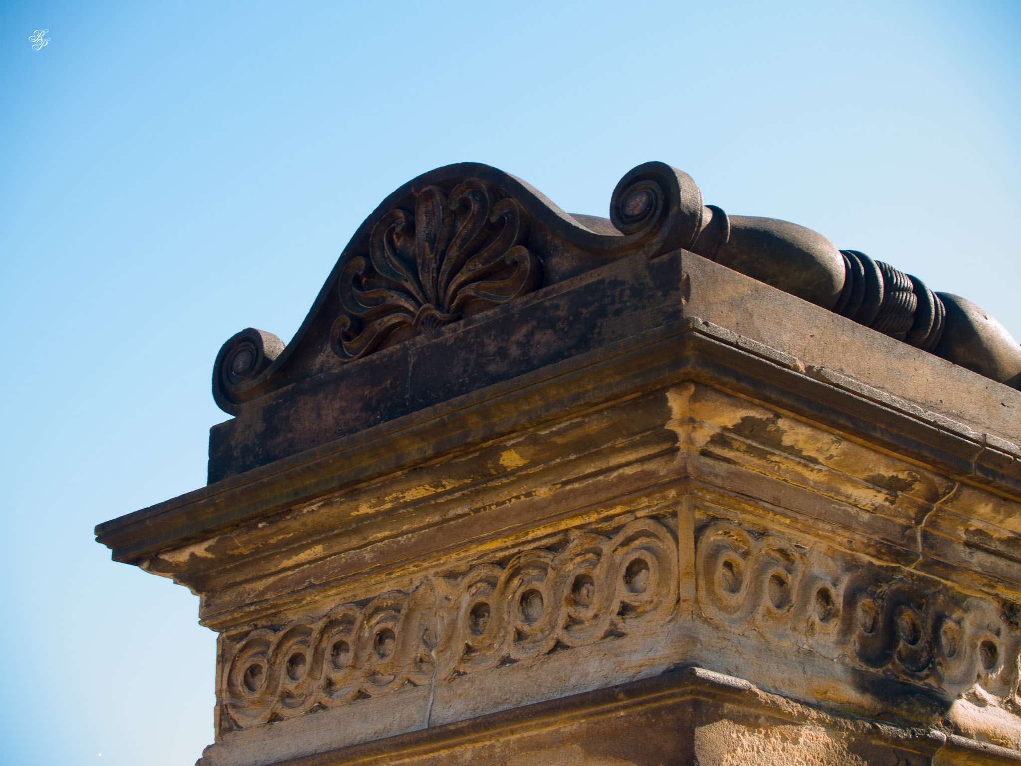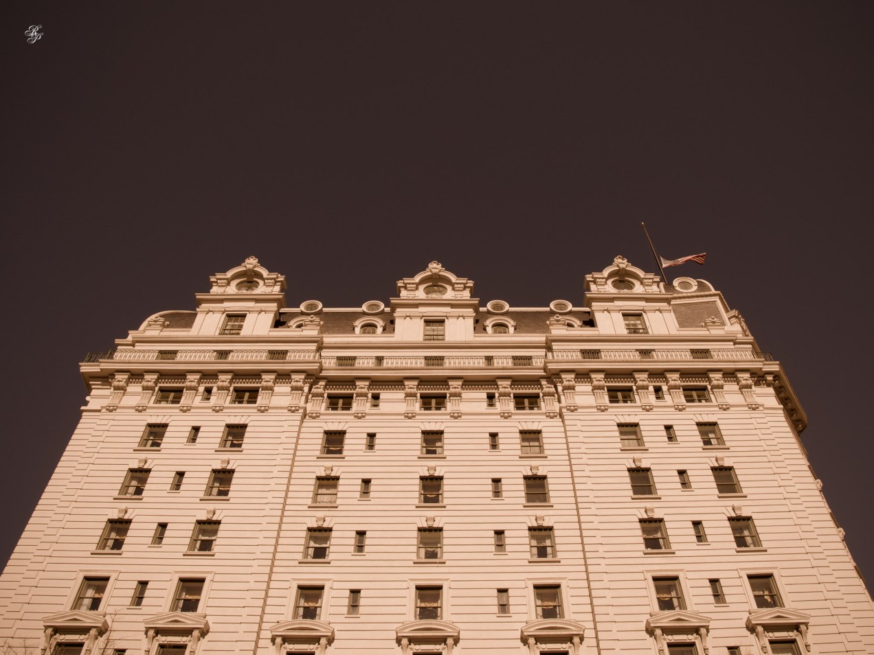 The shoddy appearance of this roof was a surprise. The standing balustrade, seemingly leading nowhere, was another. This is one of the photos where the purple fringing is readily apparent.