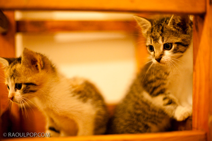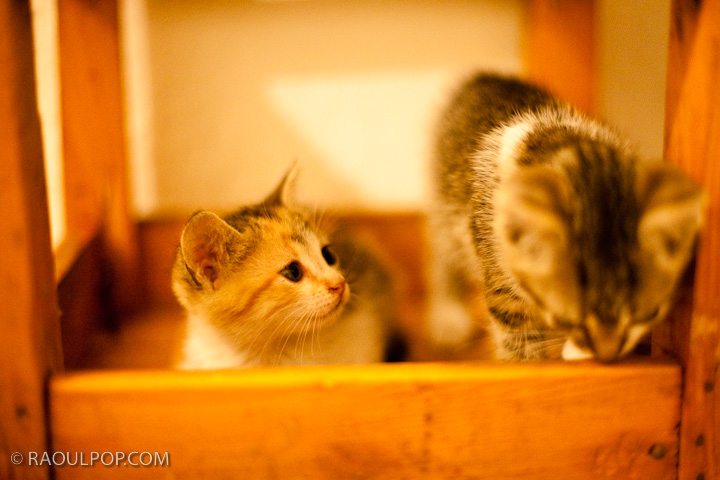 Two kittens on a stool