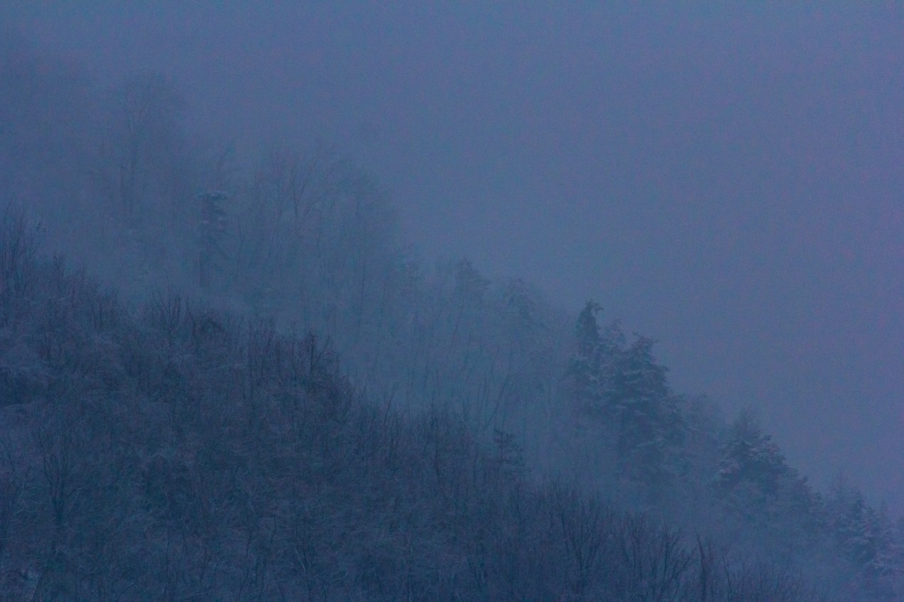 Thick fog and snowfall